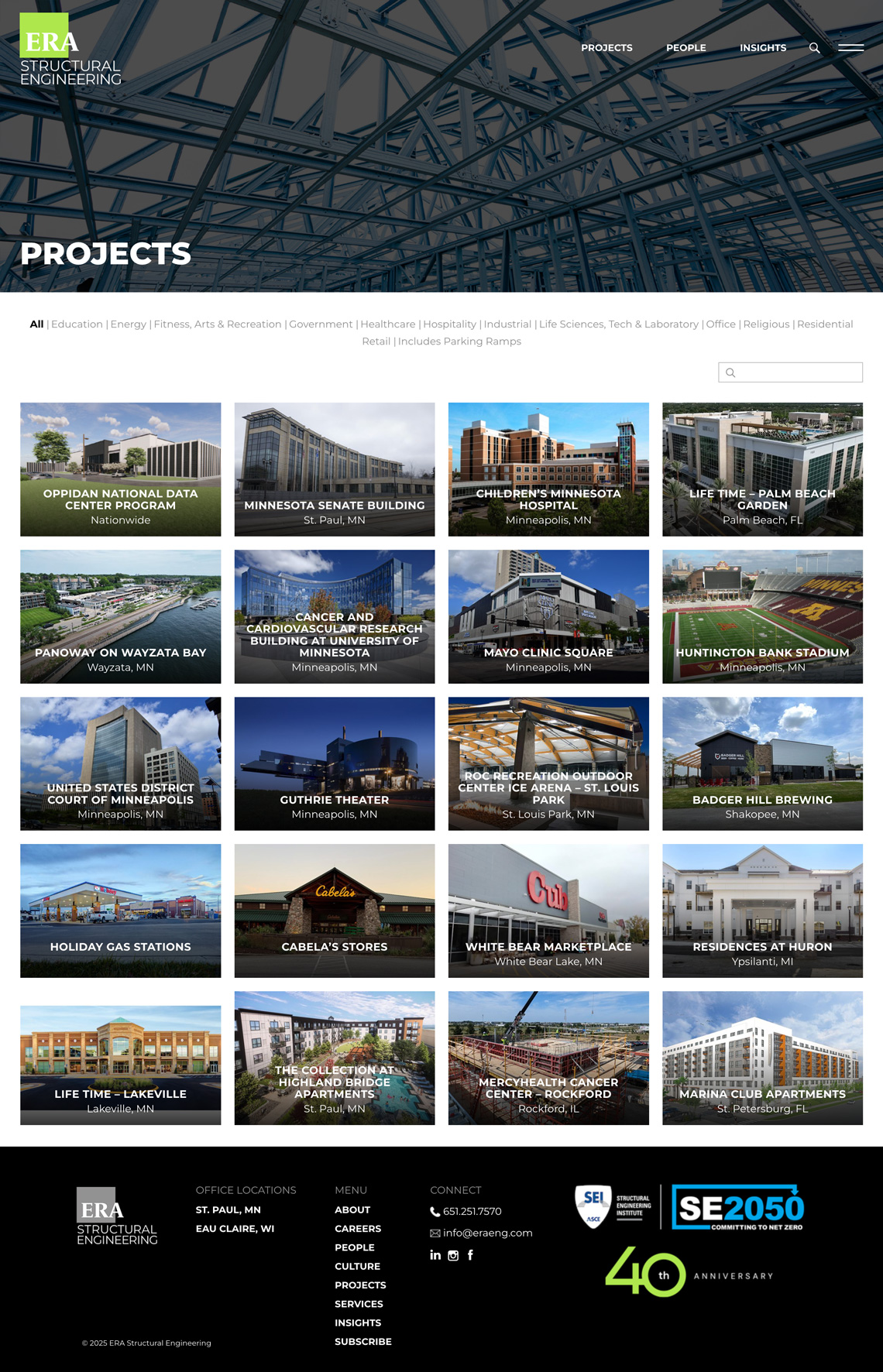 ERA is a structural engineering firm based in St. Paul, Minnesota, with additional regional offices serving clients across the U.S. and internationally. For decades, ERA has been a trusted partner on projects of all scales, delivering structural solutions that stand the test of time. But as the firm grew, they recognized the need for a stronger, more modern brand identity that reflected both their expertise and their ambitious future.