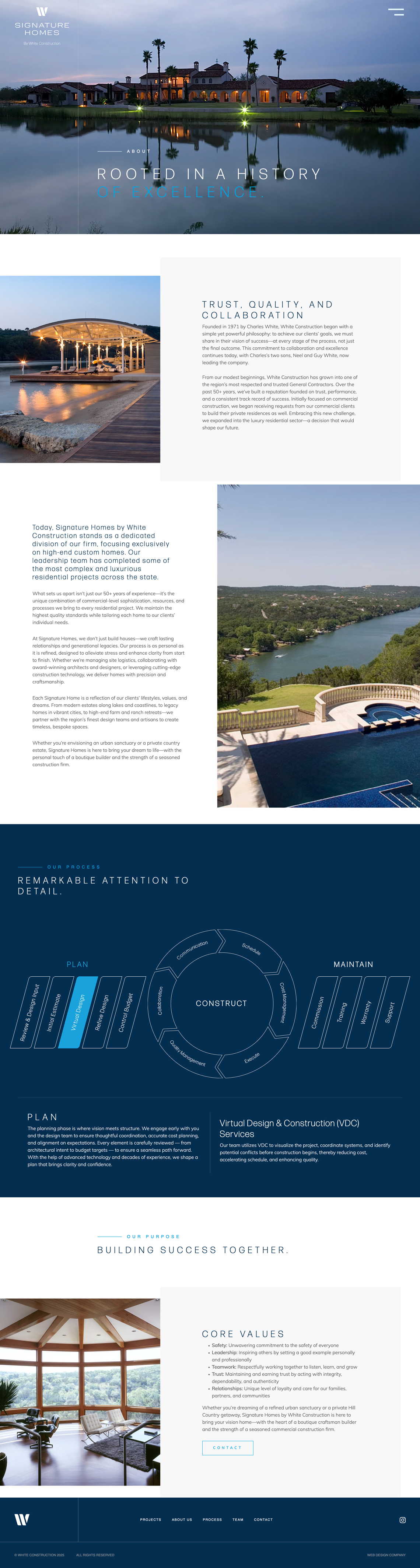 Signature Homes by White Construction represents the pinnacle of custom homebuilding, a dedicated division focused exclusively on creating refined, one-of-a-kind residences. When it came time to bring that level of excellence to their digital presence, the website needed to reflect the same standard found in every home they build.